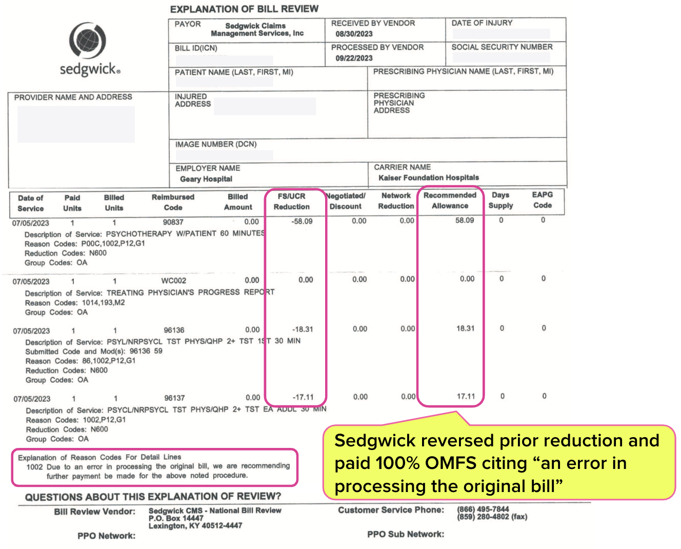 Alert Sedgwick's Phantom Payment Reductions daisyBill