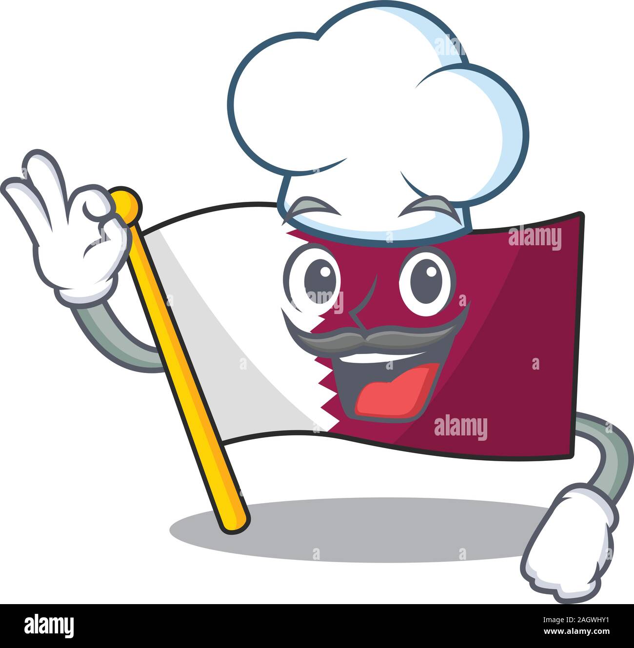 Funny Chef flag qatar Scroll cartoon character wearing white hat Stock