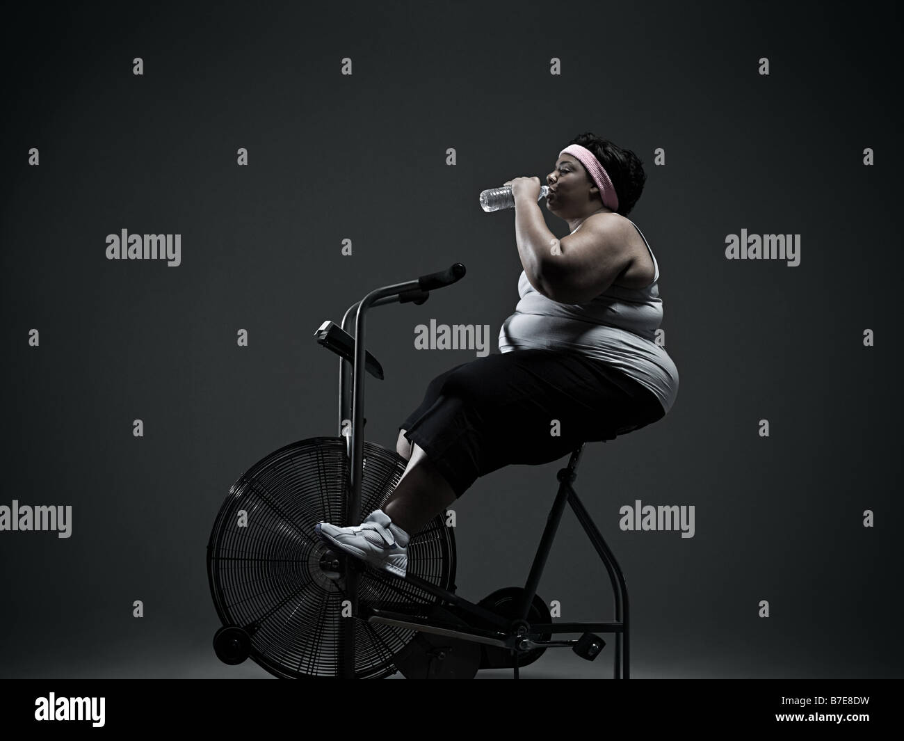 Overweight woman on exercise bike Stock Photo Alamy