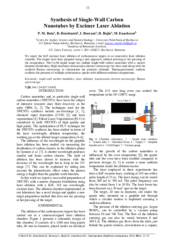 (PDF) Synthesis of singlewall carbon nanotubes by excimer laser ablation D. Dorobantu