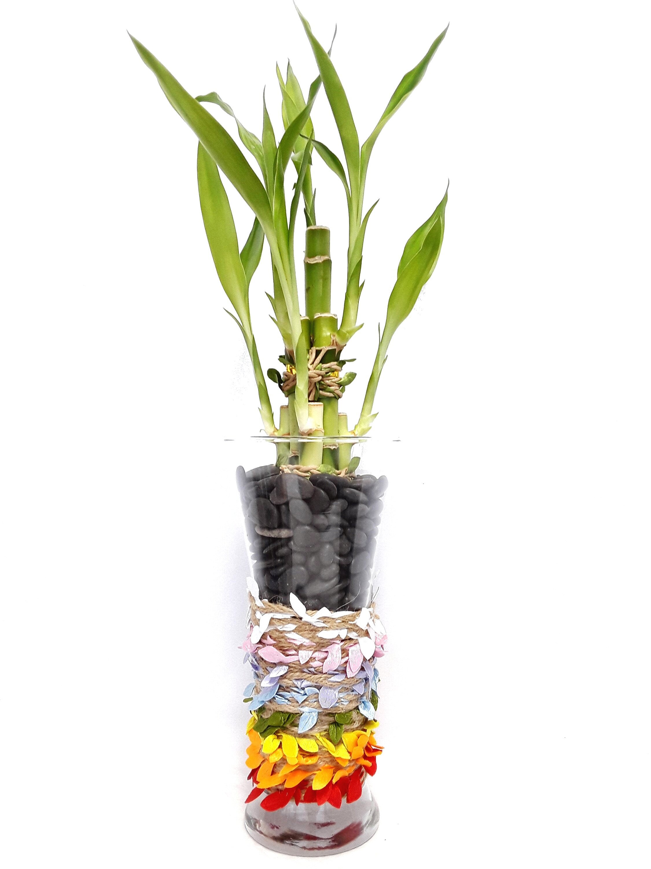 Lucky Bamboo in Decorative Vase 6 Stalks of Bamboo in Glass Etsy