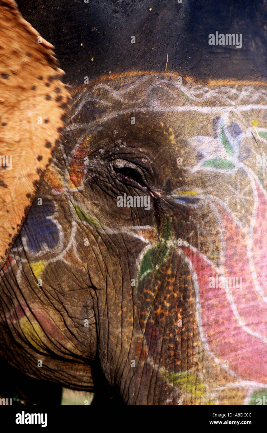 Indian elephant with decorative markings Stock Photo Alamy