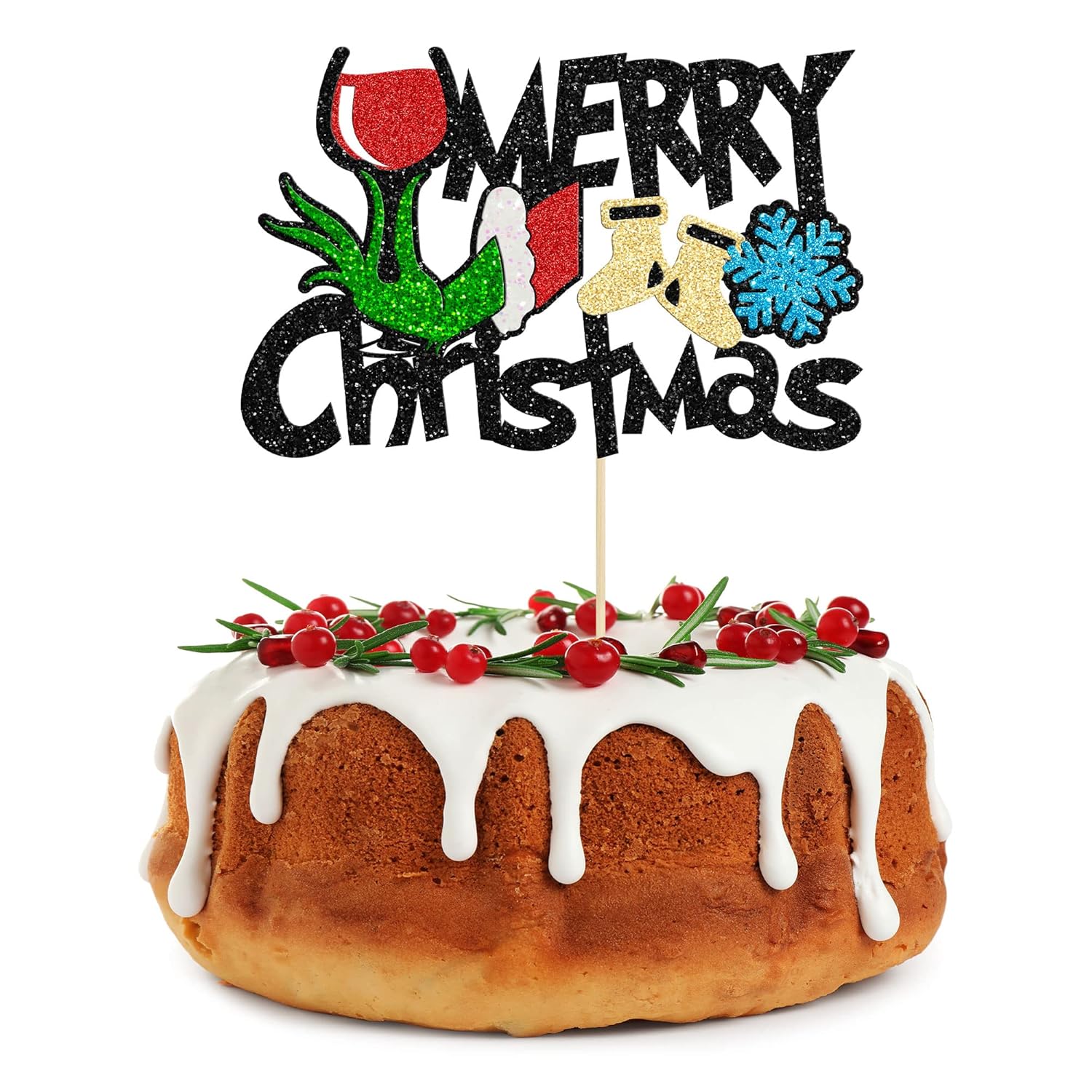 Gyufise 1 Pack Merry Christmas Cake Topper with Red and