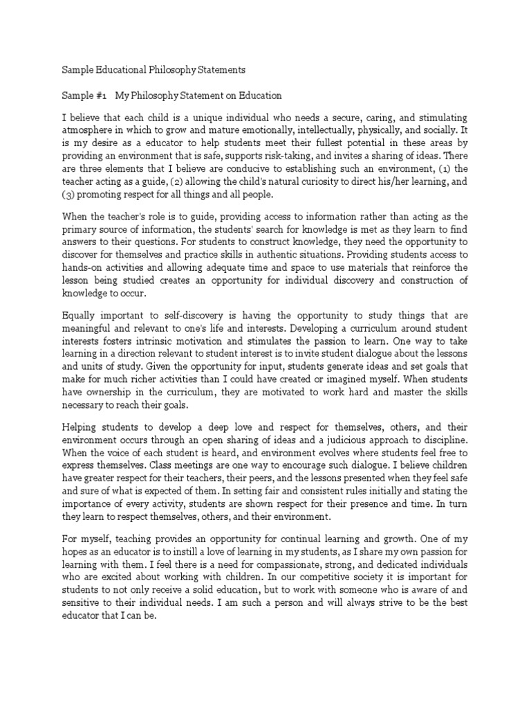 Sample Educational Philosophy Statements Philosophy Of Education