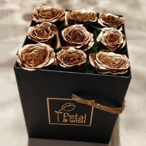 9 FRESH Roses in a Box 24 Karat GOLDDipped by Wicked Florist NYC Gold Roses In A Box explore luxury long lasting & preserved gold roses, for home or gifting. want to take it up a notch? forever rose is the world's longest lasting rose. Our collection consists of gold roses, gold dipped roses, silver and platinum. Worldwide shipping and scheduled delivery. real roses dipped in 24k gold or silver. Try our premium rose. Gold Roses In A Box.