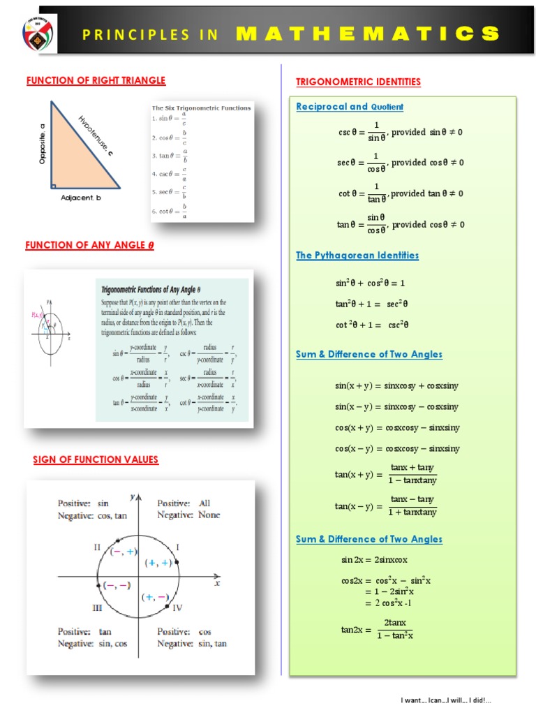 The important formulas are for arithmetic (average, percentage, ratio and proportion), algebra (linear equations, quadratic. Six trigonometric functions are available: Here are trigonometric functions, identities, and some. Trigonometry formulas are crucial for ssc cgl exams because they are extensively used in solving geometry, mensuration, and algebraic problems. 0 < <ˇ 2 or 0 < <90 hypotenuse adjacent opposite. This pdf book contains all the essential trigonometric formulas and identities required to solve complex trigonometry. This article provides a pdf of the most important trigonometry formulas for the ssc cgl exam. Trigonometric formula sheet de nition of the trig functions right triangle de nition assume that: The 6 basic trigonometric functions are sine (sin), cosine (cos), tangent (tan), cosecant (csc), secant (sec), and cotangent (cot). Sin, cos, tan, sec, cosec, and cot.