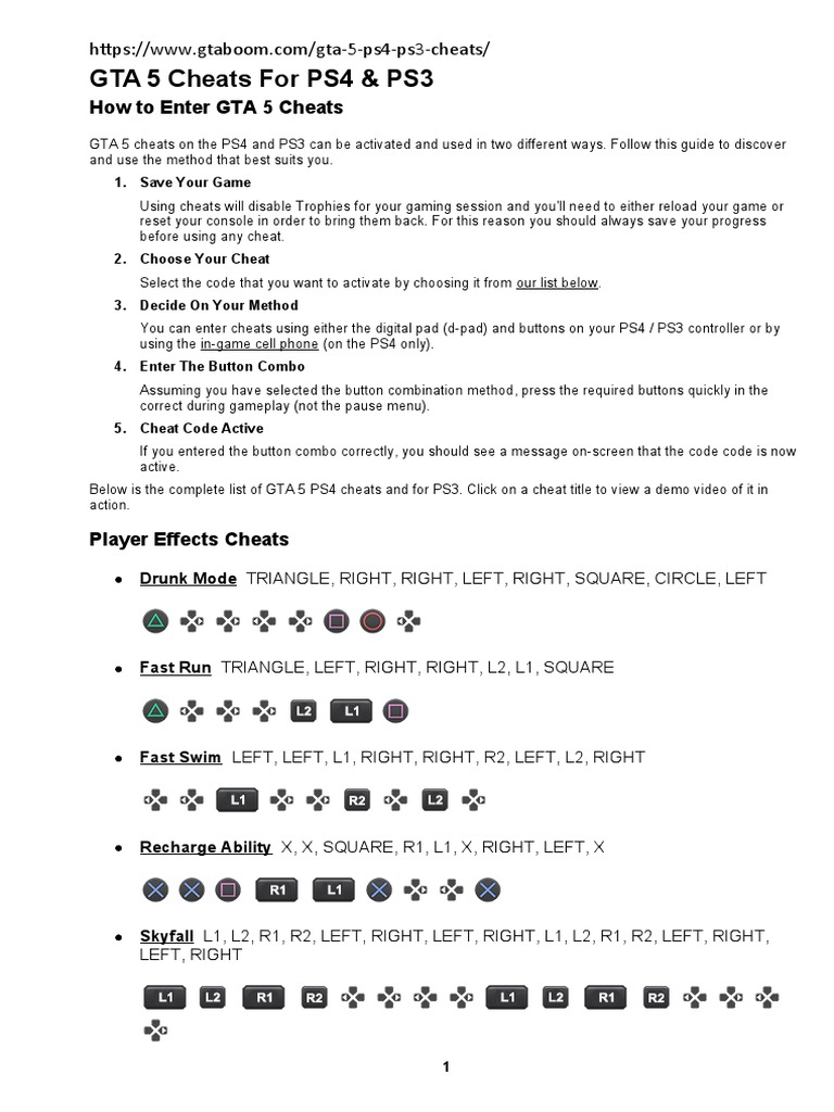GTA 5 Cheats For PS4 PDF Cheating In Video Games Play Station 3