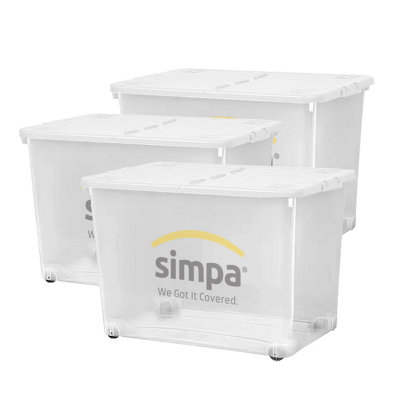 simpa 80L Wheeled Plastic Storage Boxes White Lids Set of 5 DIY at B&Q