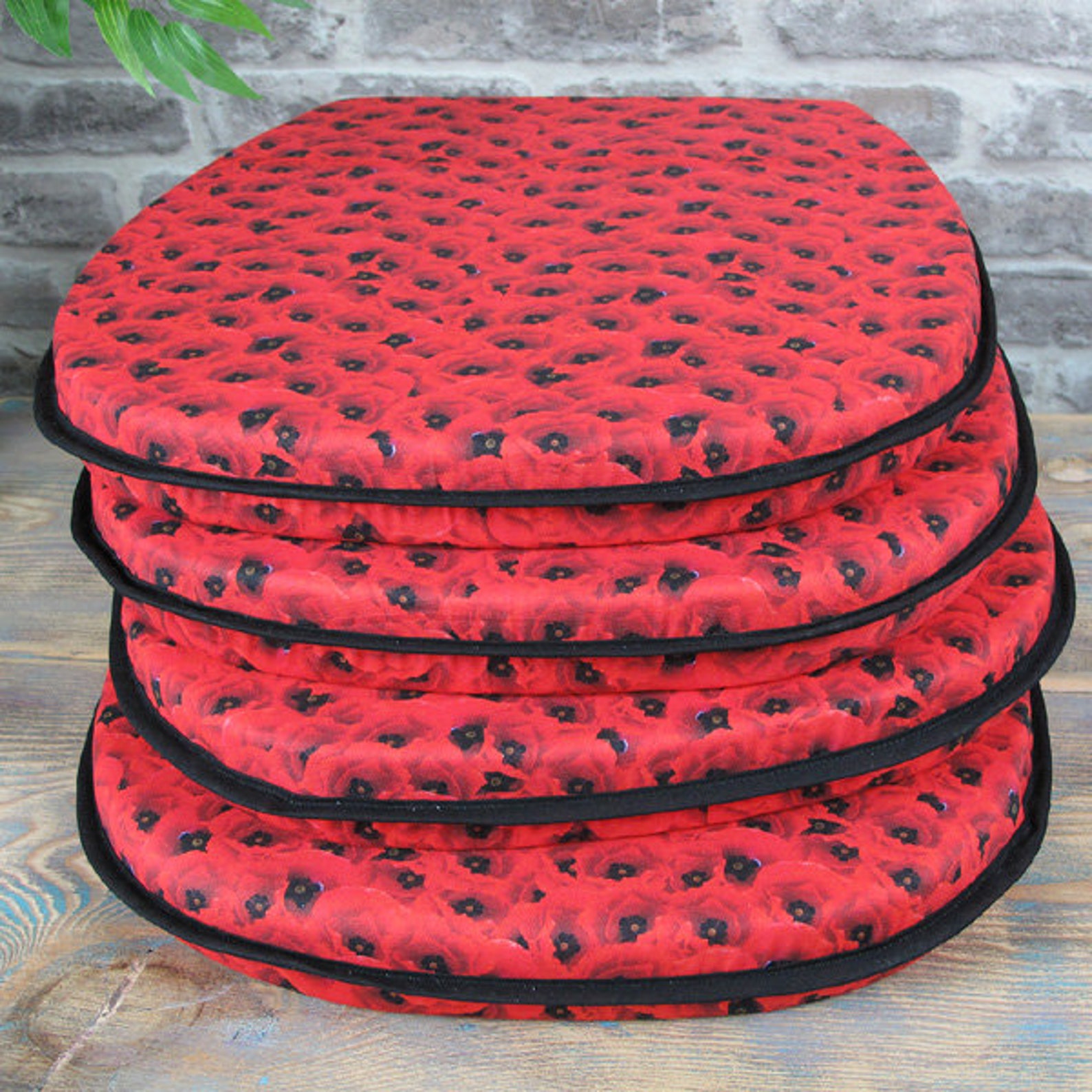 Set of 4 6 or 8 Red Poppy Classic D Seat Pads Chair Pads Etsy UK