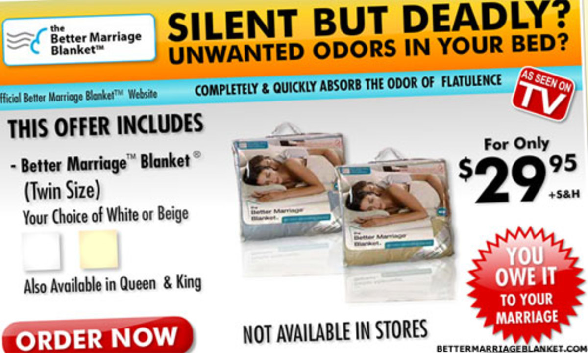 New fartabsorbing linens will save your marriage Better Marriage Blanket Commercial about press copyright contact us creators advertise developers terms. for the better marriage blanket, that man is frank bibbo, a science teacher from roxbury, n.y., who. what is the 'better marriage blanket'? buy yours at www.buybettermarriageblanket.com starting at $39.95!. It's guaranteed to make sleeping in the same bed a more pleasant (and less. it’s called. Better Marriage Blanket Commercial.
