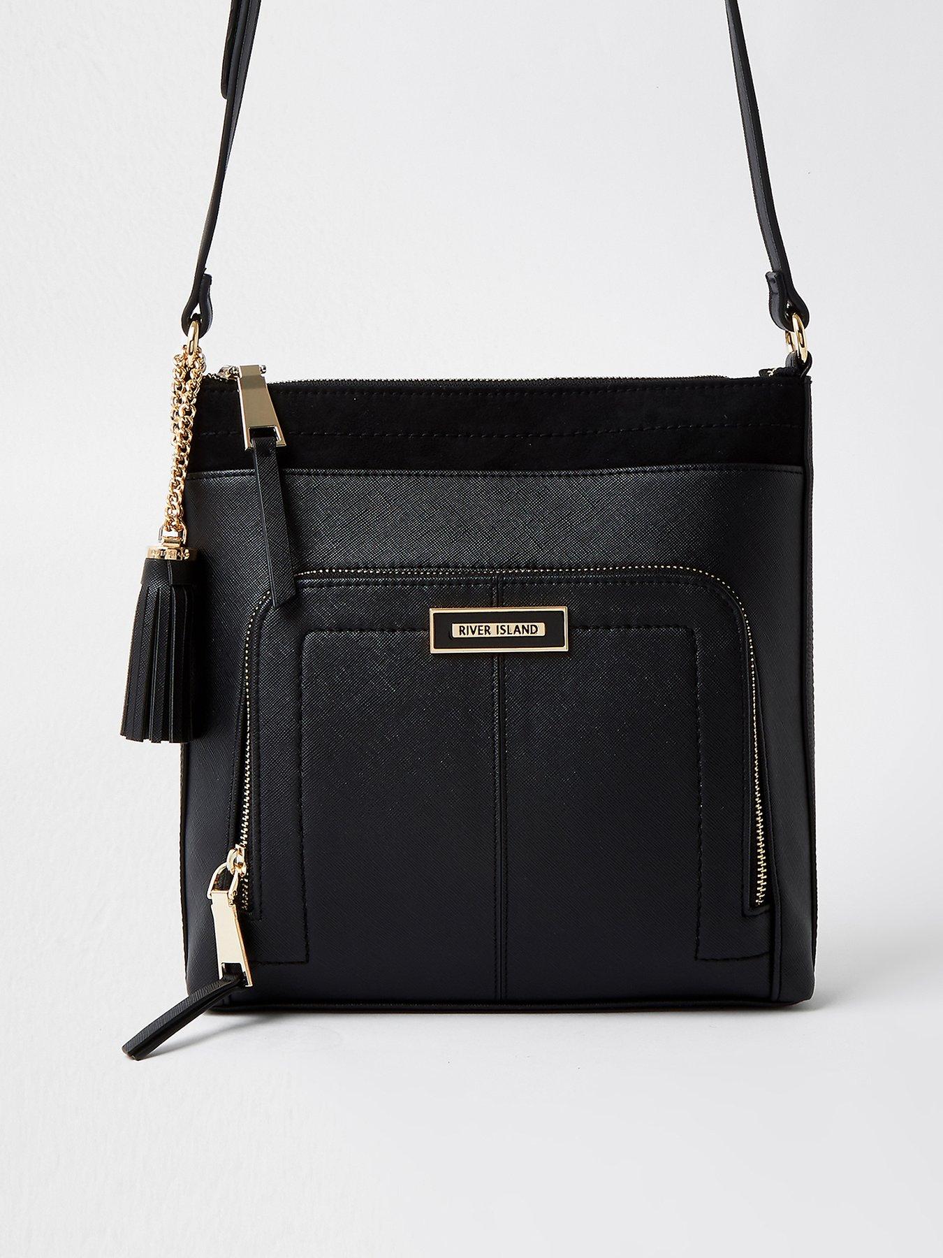 River Island Zip Pocket Front Messengery Bag Black very.co.uk
