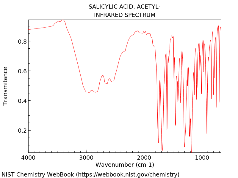SOLVED 12. Examine the IR spectrum of aspirin. What structural Aspirin Ir Spectrum Spectrum a is an ir spectrum of just air (a background spectrum). Click on the peaks in the spectrum to see the molecular vibration they corresponds to. Ir spectrophotometry aims to identify the active substance and compare these types of aspirin. Figure 3 shows the ir spectra for three different. I) using your knowledge of ir spectroscopy, assign the. . Aspirin Ir Spectrum.