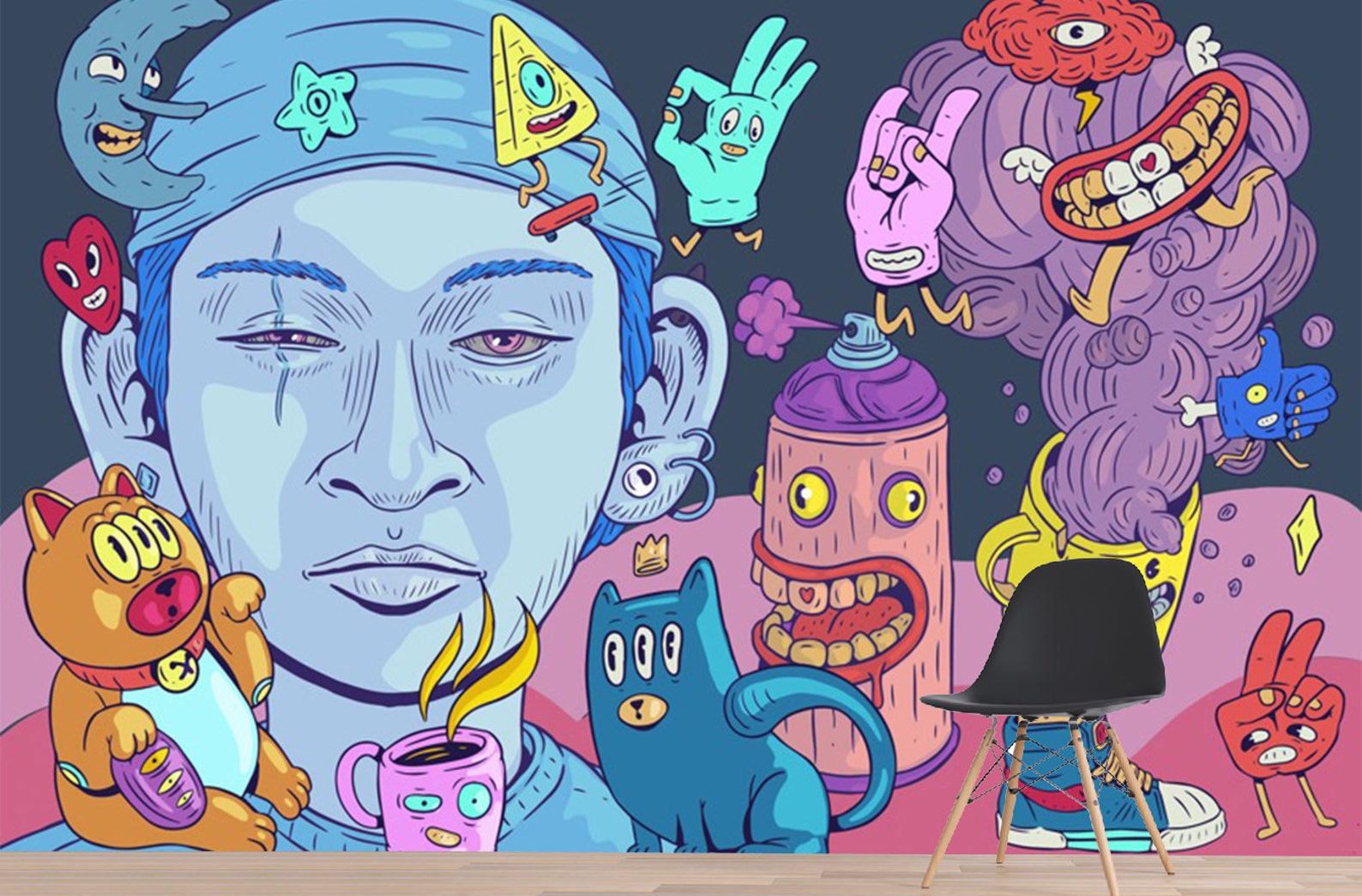 Blue Face Graffiti Wallpaper Peel and Stick Wallpaper Etsy