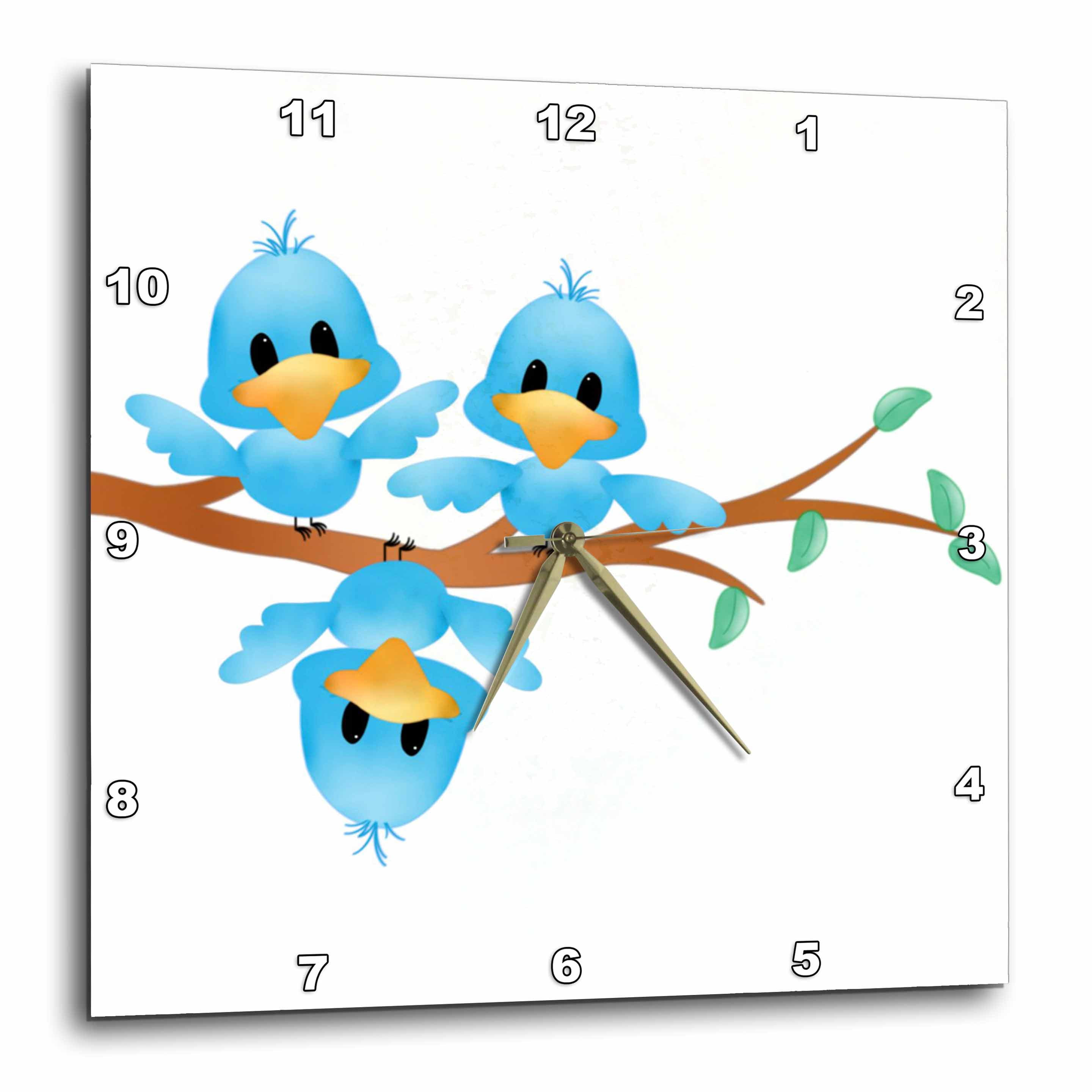 3dRose Trio of Blue Birds Wall Clock, 10 by 10inch