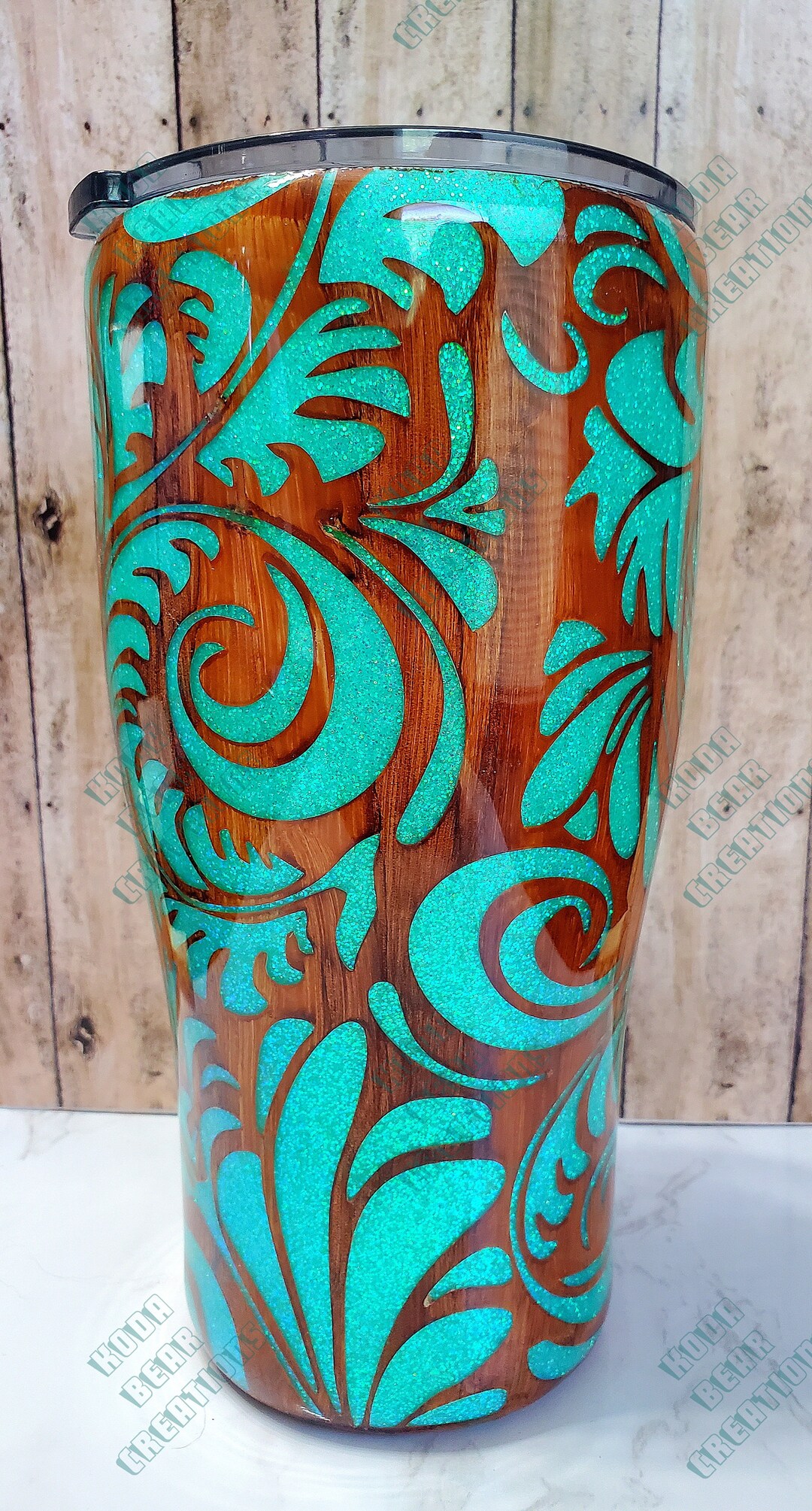 Peekaboo Woodgrain and Glitter Tumbler Etsy