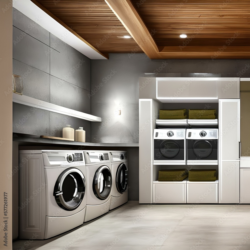 19. A laundry room with a washer and dryer, and a sink for washing