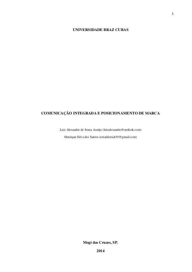 Universidade braz cubas trabalho de conclusão de curso pub2014