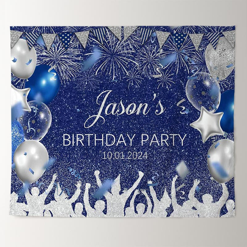 Personalized Spark Balloon Blue Birthday Backdrop Lofaris