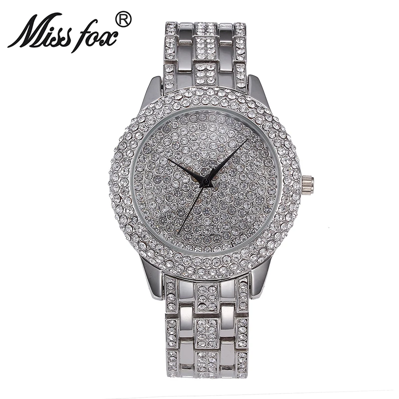 Miss Fox Full Diamond Round Face Watch Women Bling Casual Ladies