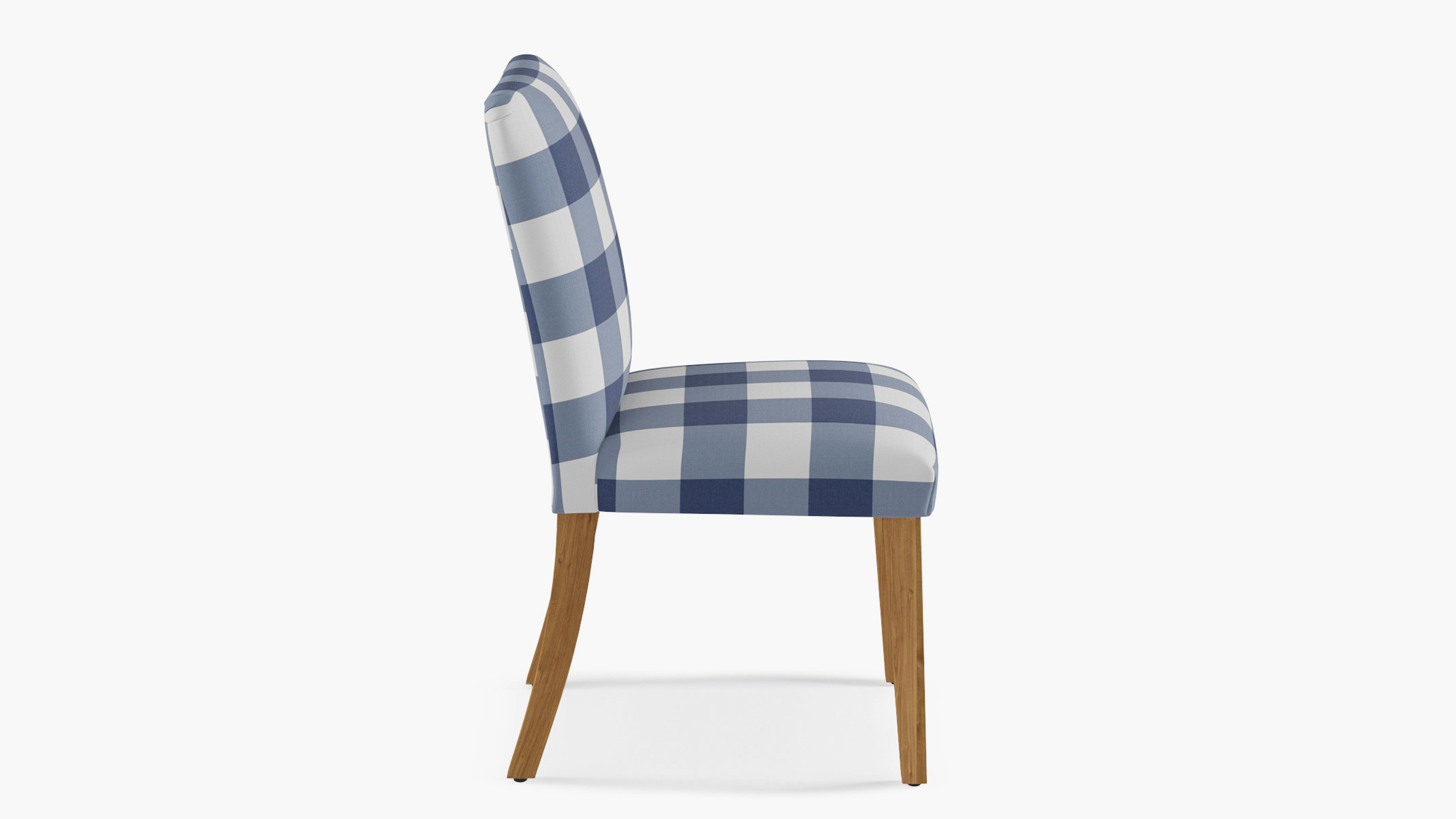 French Blue Check Upholstered Custom Classic Dining Chair Fully