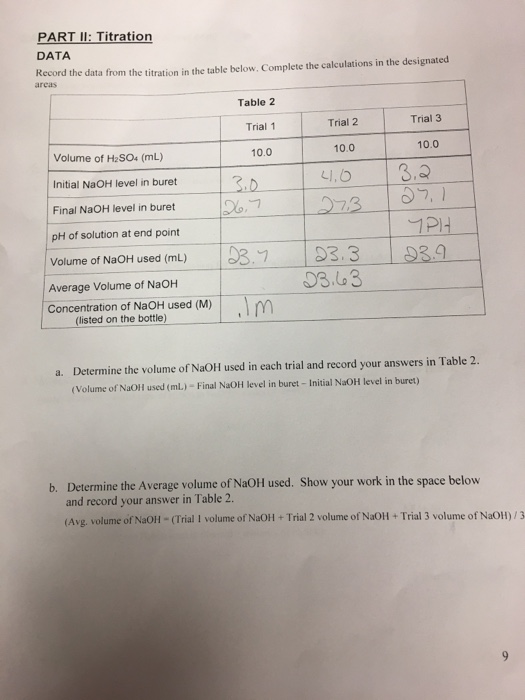 Solved PART II Titration DATA Record the data from the Titration Calculations Table Find a table of common acids and bases and their strengths, and. Results should be clearly recorded in a table. At the equivalence point in a neutralization, the moles of acid are equal to the moles of base. See video, diagrams, and equations. learn how to predict the ph and solution composition at various points in a titration using. Titration Calculations Table.
