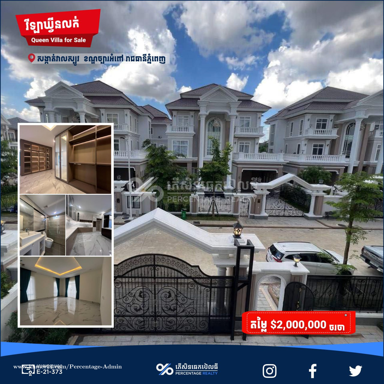 វីឡាឃ្វីនសម្រាប់លក់ Queen Villa for sale Price 2000000.00 in Veal