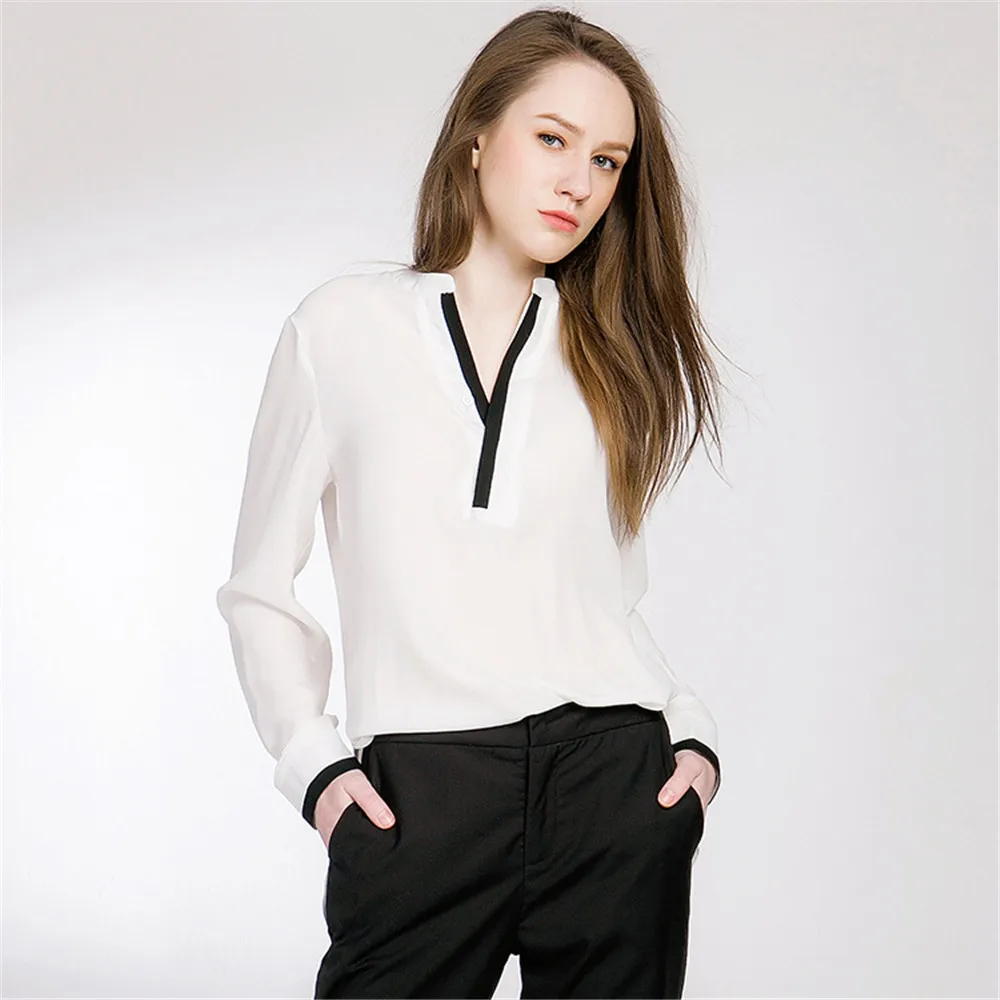 Topgirls Women Work Shirt Summer Ladies Long Sleeve White Blouse Women
