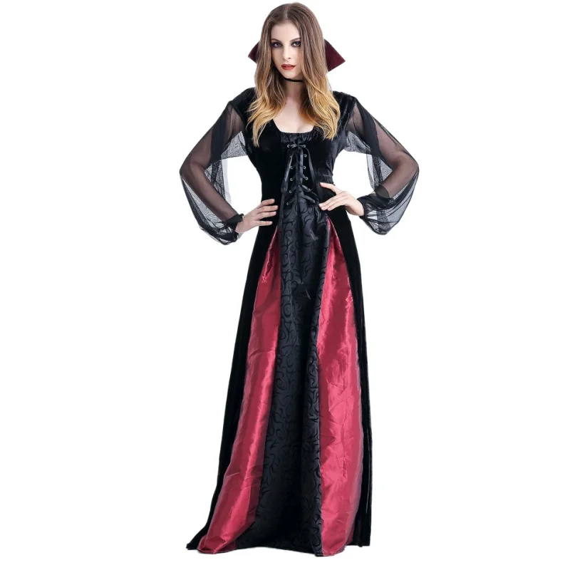 2018 Vintage Long Dresses Vampires Queen Mesh Elastic Women Cosplay