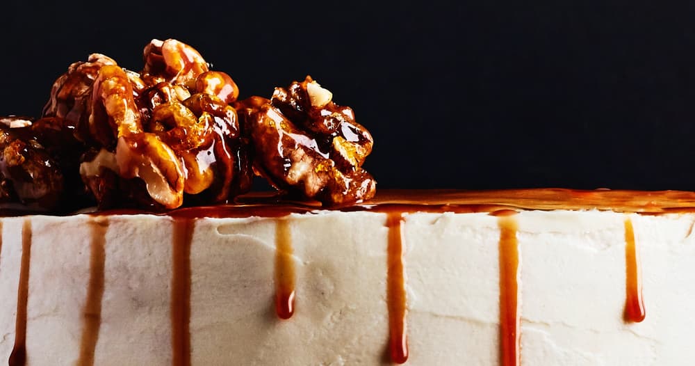 Caramel Apple Drip Cake with Candied Walnuts Punchfork