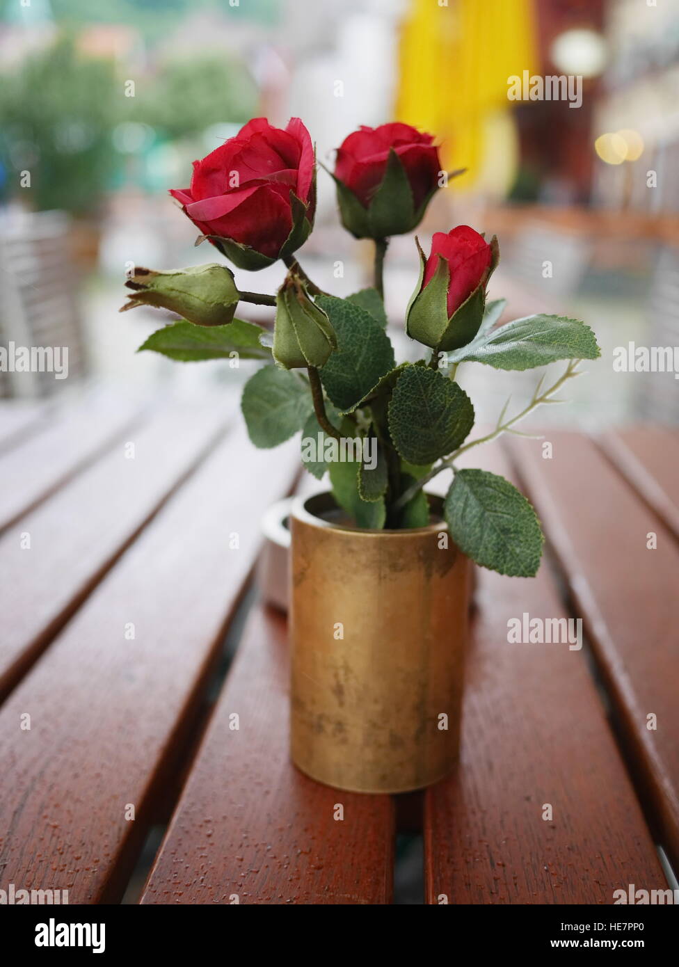 rose vase table outside Stock Photo Alamy
