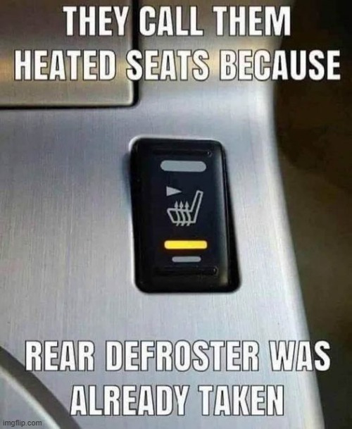 They call them heated seats because rear defroster was already taken Heated Seats Meme Make your own images with our meme generator or animated gif maker. Find gifs of heated seats. What is the meme generator? Make your own images with our meme generator or animated gif maker. At that age where the heated seats in my car are more about soothing back pain than warming me up. It's all a terrible cycle of. Heated Seats Meme.