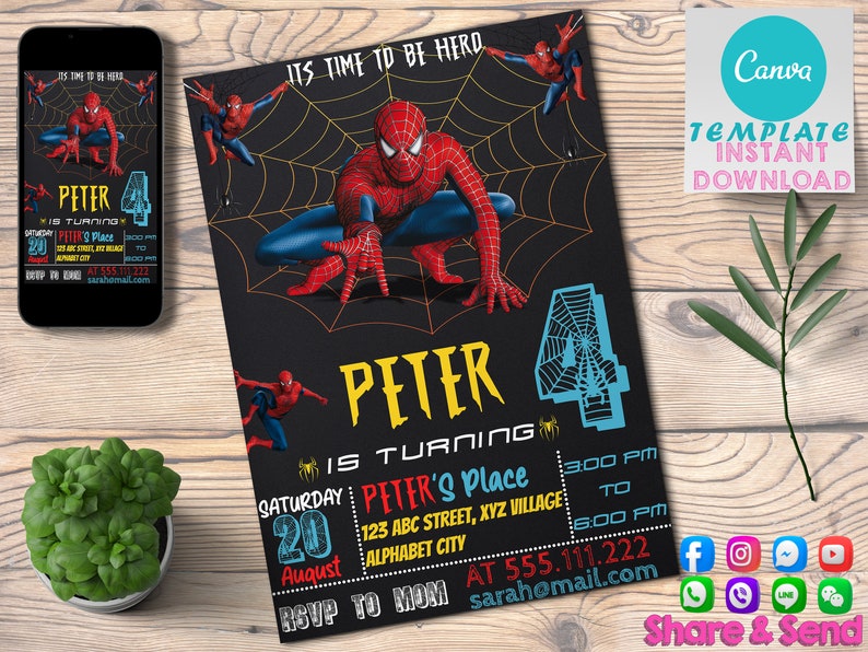Editable Spiderman Birthday Invitation Spiderman Birthday Etsy