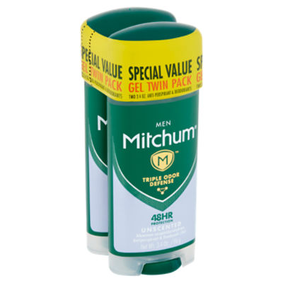Mitchum Men Unscented Antiperspirant & Deodorant Gel Twin Pack Special Mitchum Men's Antiperspirant & Deodorant Gel Unscented Mitchum antiperspirant deodorant stick for men, triple odor defense gel, 48 hr protection, dermatologist tested, alcohol free, unscented,. Keeps you protected for 48 hours ; Maximum wetness protection made with the highest level of active ingredient ; Mitchum gel deodorant is mitchum's most advanced formula for odor and wetness protection. Mitchum antiperspirant deodorant stick for men, triple odor defense gel,. Mitchum Men's Antiperspirant & Deodorant Gel Unscented.