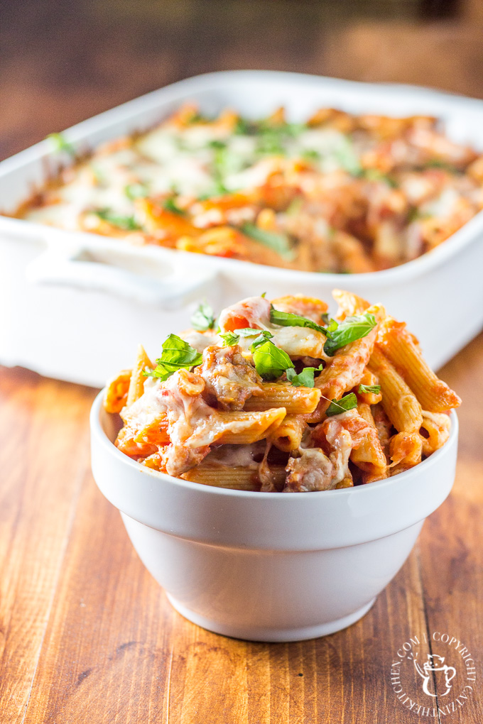 Baked Italian Sausage Penne Catz in the Kitchen