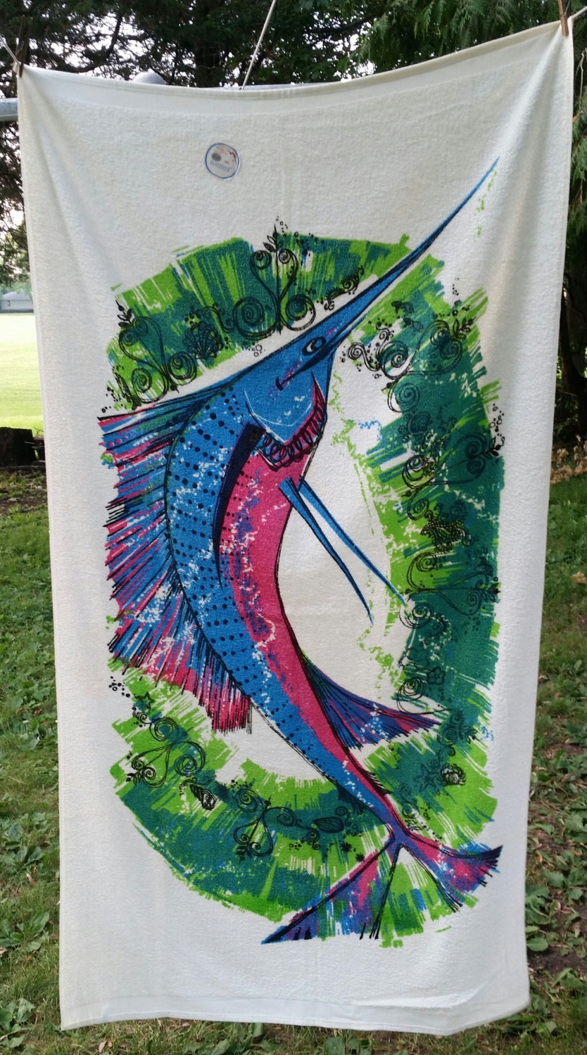 vintage beach towel 1964 new Jantzen Sail Fish beach towel