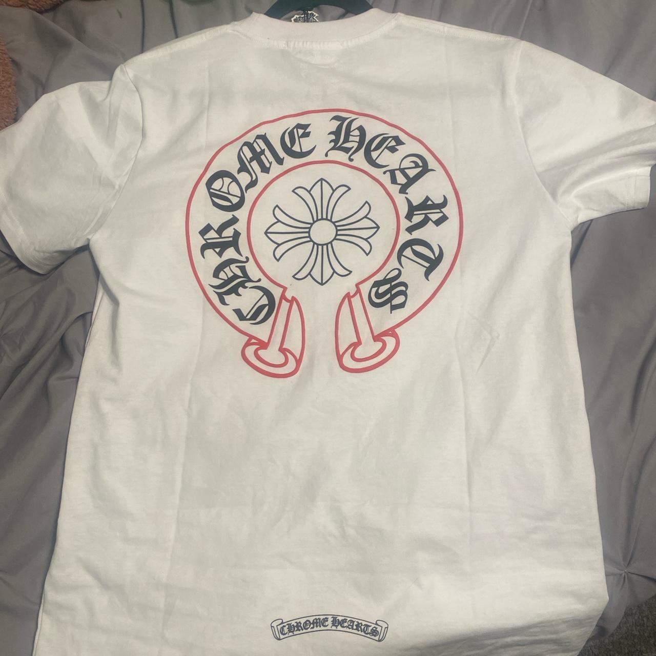 Chrome Hearts Men's White and Red Shirt Depop