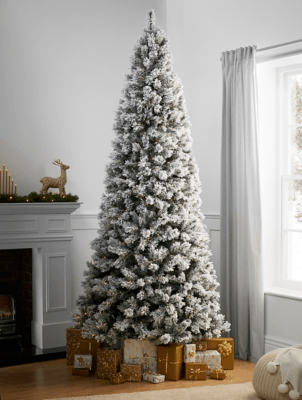 Green 9ft PreLit Pine Snowy Christmas Tree Christmas at ASDA