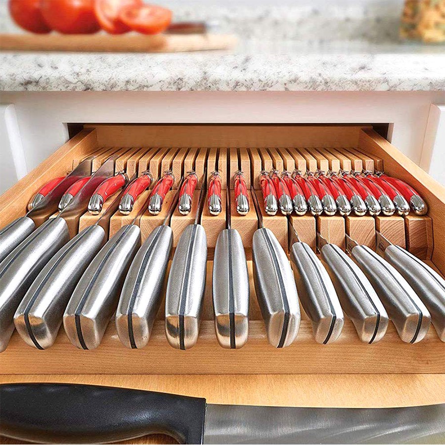 Drawer Organizers Wood Knife Block Kitchen Drawer Insert 19 Slots Drawer Knife Block Insert Wide or use in larger drawers in combination. Arrange sharp objects in a. Keep your knives organized and within reach with this trimmable knife block insert. Custom knife block drawer organizer, chef's knife block drawer insert for 4, 6, 8, 10 or 12 knifes custom to your specs Drawer Knife Block Insert.
