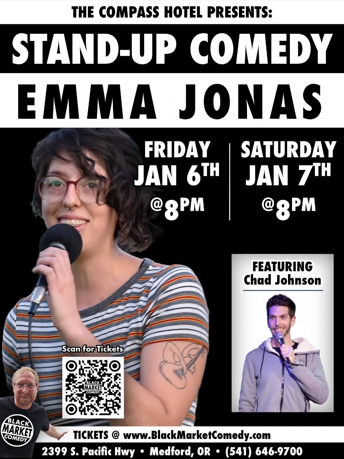 Standup Comedy with Emma Jonas (JAN 7th Medford, OR), Compass Hotel