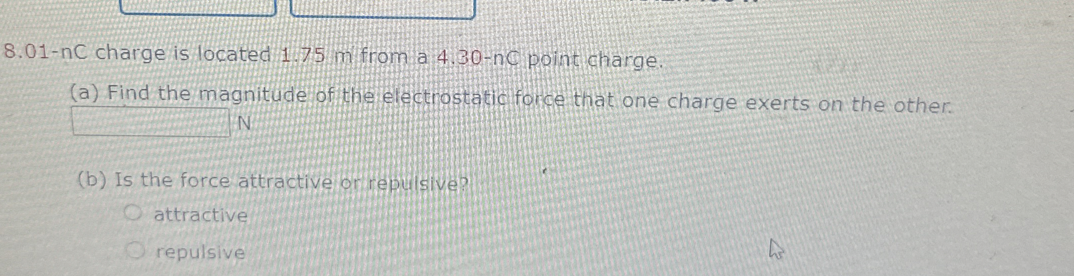 [Solved] 8.01nc charge is located 1.75 m from a 4.30nC po