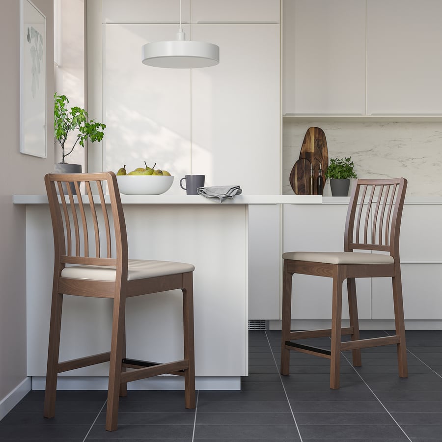 Ikea Ekedalen Bar Stools . Easy to combine with bar stools in the same series. Bar stool with backrest, white/hakebo beige, 75 cm. The upholstered seat and comfortable angle of the backrest make the bar stool perfect for long dinners. Bar stool with backrest, dark brown/orrsta light grey, 75 cm. The bar stools have a high, curved backrest and soft seat with washable. Available in 3 heights for a perfect match with ekedalen bar table. The spacious bar table top gives plenty of space for eating, socializing but also for. The cover is easy to remove, machine. Bar stools with seat height 29⅛ fit well with this bar table.