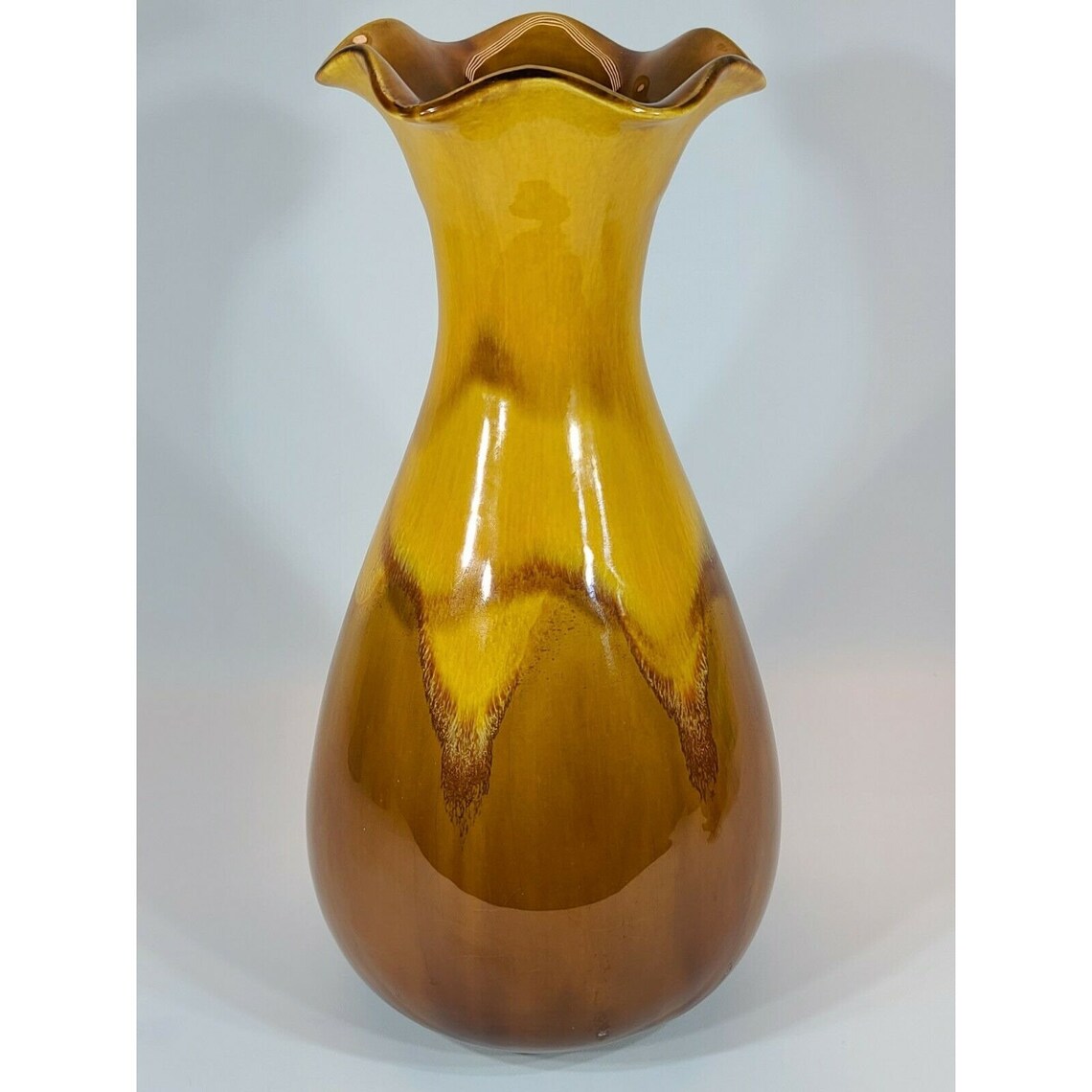 Vintage Haeger Brown & Yellow Fluted Edge Vase Etsy