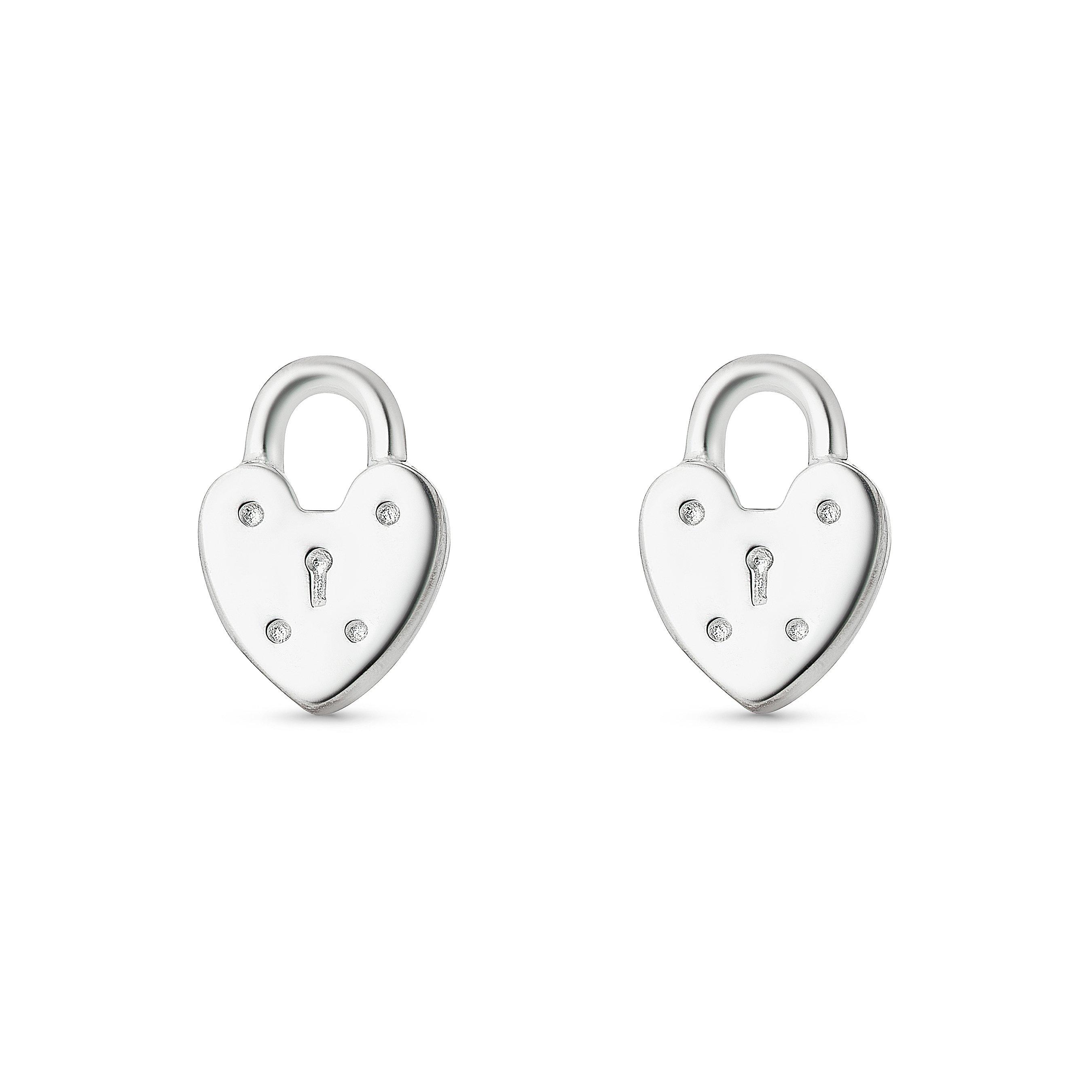 Lauren Ralph Lauren Sterling Silver Heart Padlock and Key Earrings Set