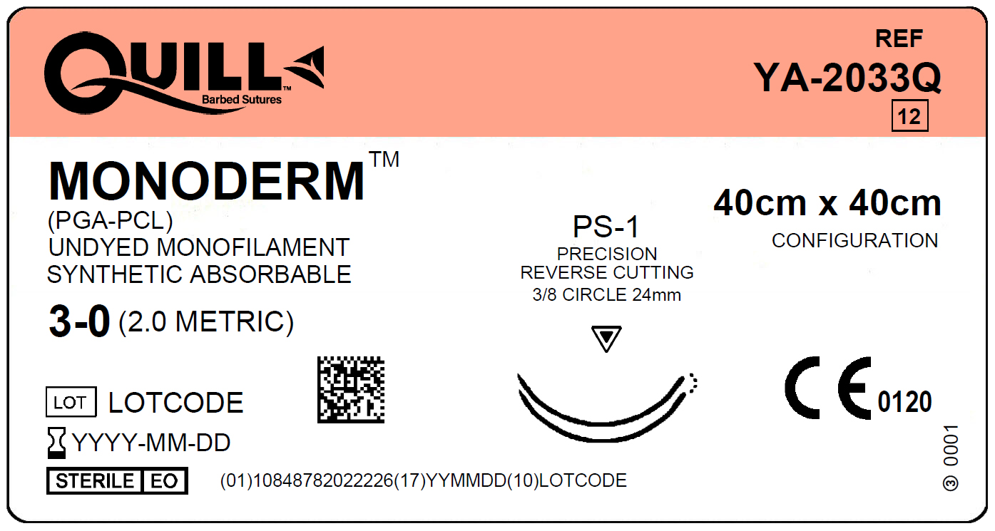 Quill Monoderm 30 Undyed 40cm x 40cm PS1 BiDirectional Surgical