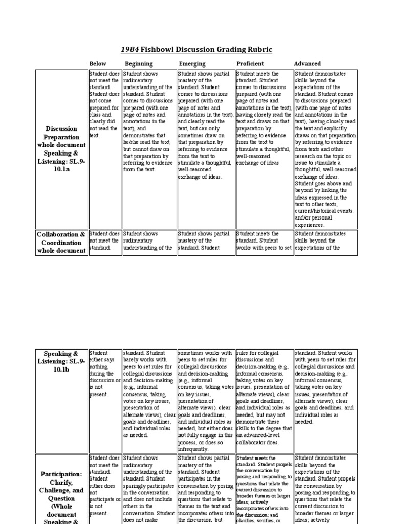 1984 Fishbowl Discussion Grading Rubric PDF Consensus Decision