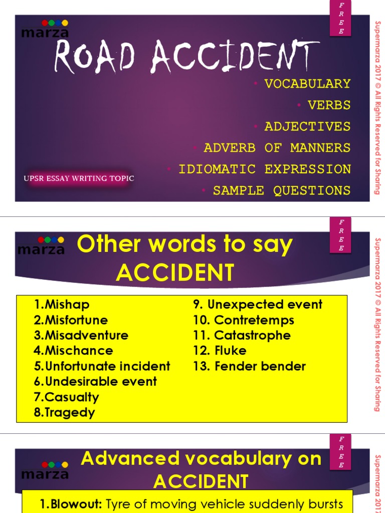 Road Accident Vocabulary Verbs Adjectives Adverb of Manners Idiomatic Expression Sample