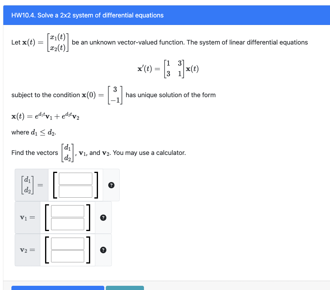 Solved HW10.4. Solve a 2×2 system of differential equations