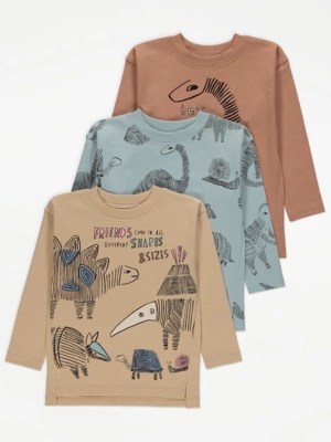 Dinosaur Long Sleeve Oversized Tops 3 Pack Kids at ASDA