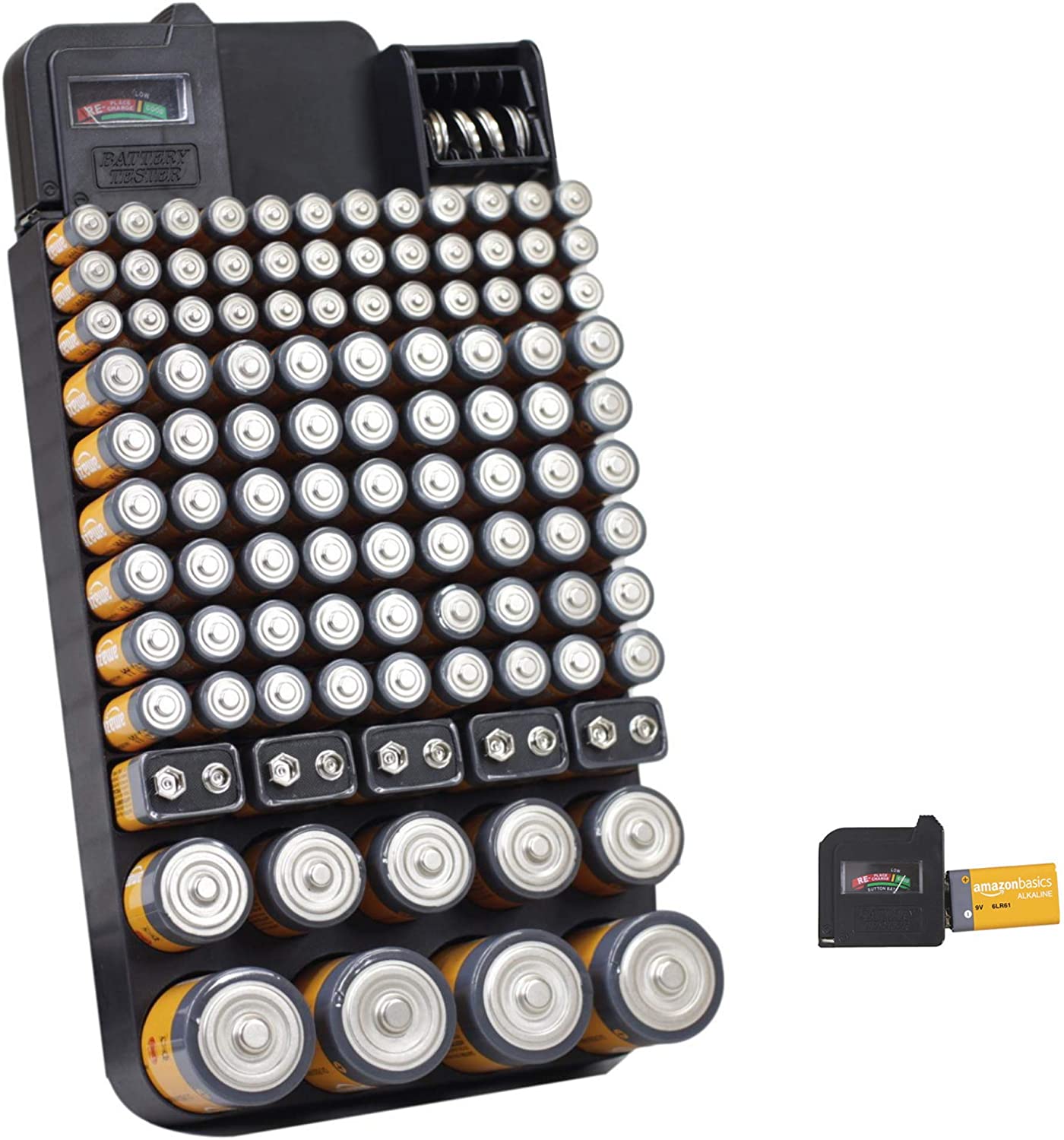 ontel battery daddy 180 battery organizer and storage case with tester, 1 count, as seen on tv. battery daddy uses both sides of the case to store up to 168 batteries and the unique design groups them in compartments for. it works on the power of the battery you are testing! You can store it conveniently in your drawer, closet or you can mount it on the. this storage organizer includes an lcd battery tester to test the remaining life of the battery. battery organizer storage case with battery tester for aaa aa c d 9v and button batteries storage box holds 110 batteries. The tester does not require any.