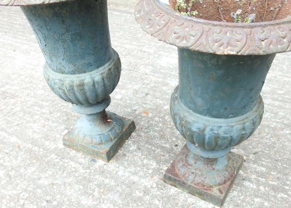Pair of vintage cast iron garden urns Garden Urns Near Me our handmade cast stone garden urns make beautiful features on pedestals, as finials or as traditional style garden planters. world of pots is a family business, based in kent that specialises in very large garden pots, plant pots, urns, bowls and planters. large stone cast garden urn with a wonderful detail and shaped as blooming tulips will. Garden Urns Near Me.